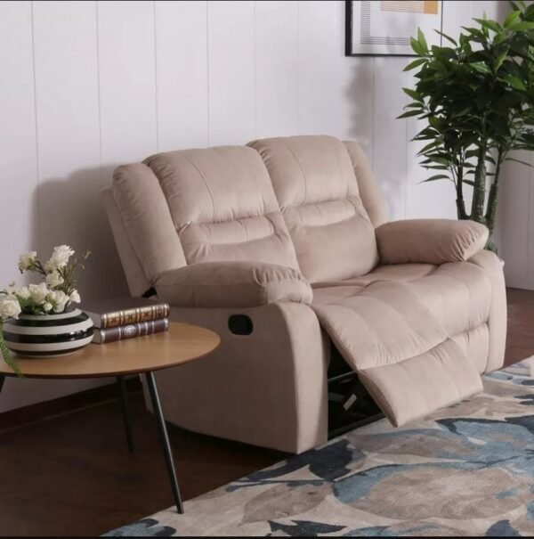 Lay back after a long day of work on this two-seater manual recliner sofa that promises utmost comfort and ease. Adding to the convenience, it has an adjustable back which you can rearrange to meet your comfort goals. The tufted pattern and the sloped arms heighten the look of the recliner and offer it a cosy appeal.