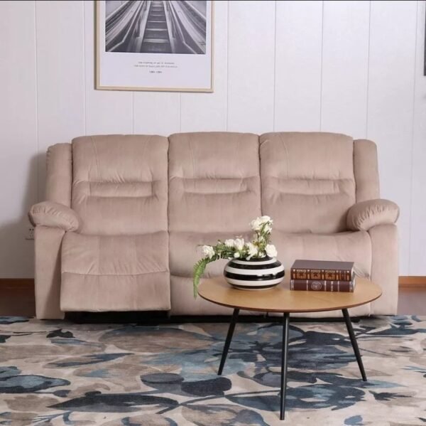 Lay back after a long day of work on this three-seater manual recliner sofa that promises utmost comfort and ease. Adding to the convenience, it has an adjustable back which you can rearrange to meet your comfort goals. The tufted pattern and the sloped arms heighten the look of the recliner and offer it a cosy appeal.