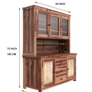 Enhance your kitchen with this elegantly crafted Sheesham wood kitchen cabinet, combining timeless design with everyday functionality. Standing tall at 72 inches, this cabinet features a solid Sheesham wood body with glass doors that add a luxurious and airy feel.