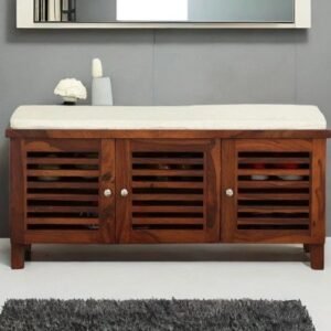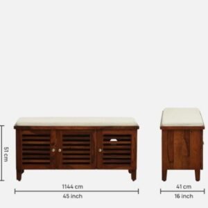 Overall, the Wooden Shoe Rack with Seating in Honey Oak Finish is an excellent choice for individuals or families looking to keep their shoes tidy, enhance the entryway’s decor, and enjoy the added convenience of having a comfortable seating area at their doorstep.