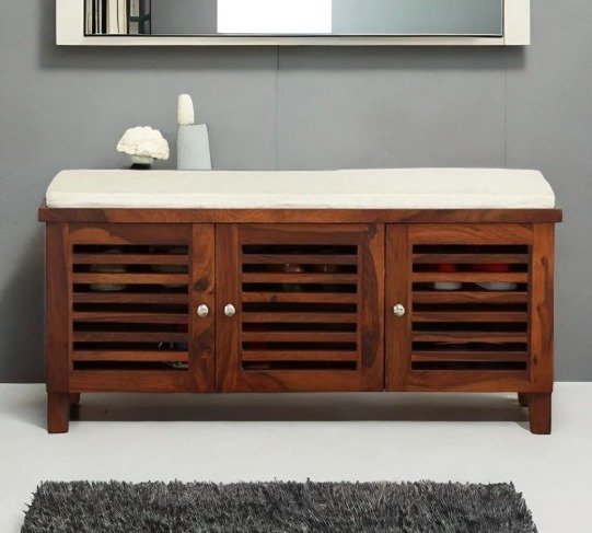 The combination of shoe storage and seating makes the Wooden Shoe Rack with Seating a practical and space-saving solution for homes with limited entryway space. It offers a functional and aesthetically pleasing way to keep your shoes organized while also serving as a convenient spot for various daily activities.